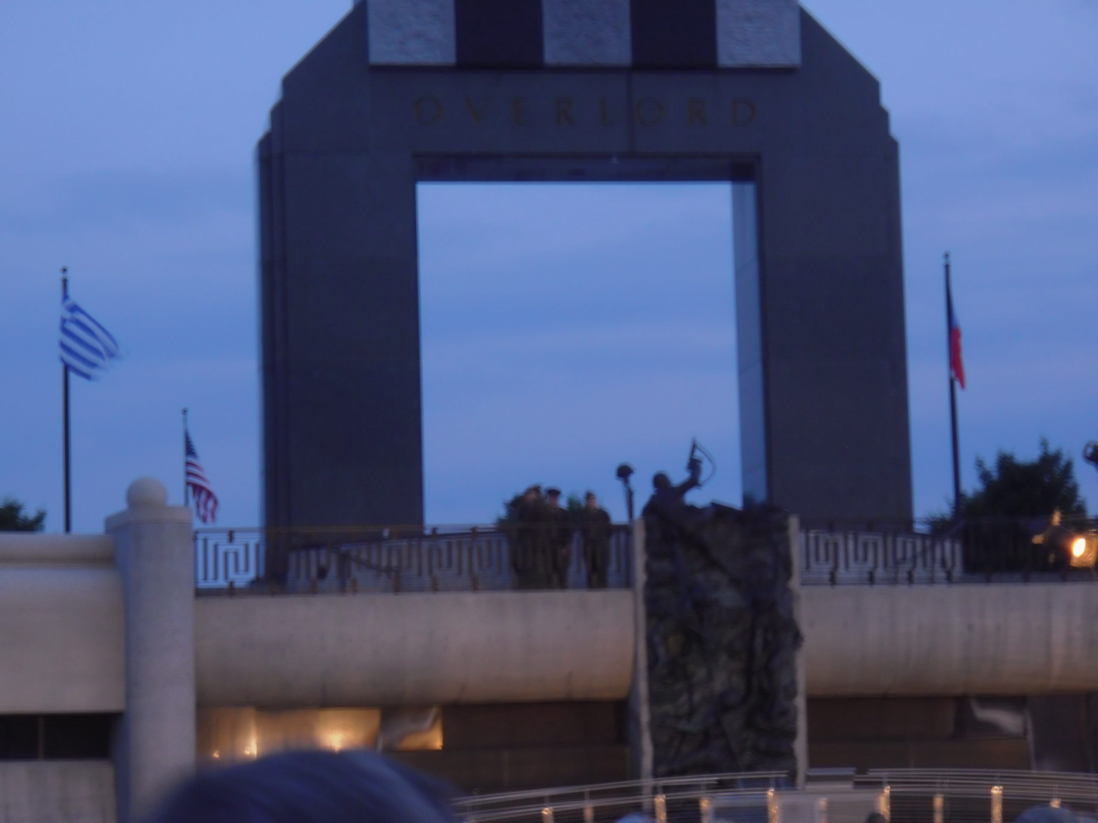The night was as beautiful as the music, with a half moon appearing high above the Overlord Arch during the second set. Just at dusk, a group of 29th Division reenactors appeared on the Arch plaza looking down at the concert below. At a glance, and for a second it seemed that 1944 and 2014 had become all jumbled together. There was something in their casual, approving pose. Such are the moments at events like this. After all, the past has to be somewhere, even if it is only in our hearts and our imaginations.