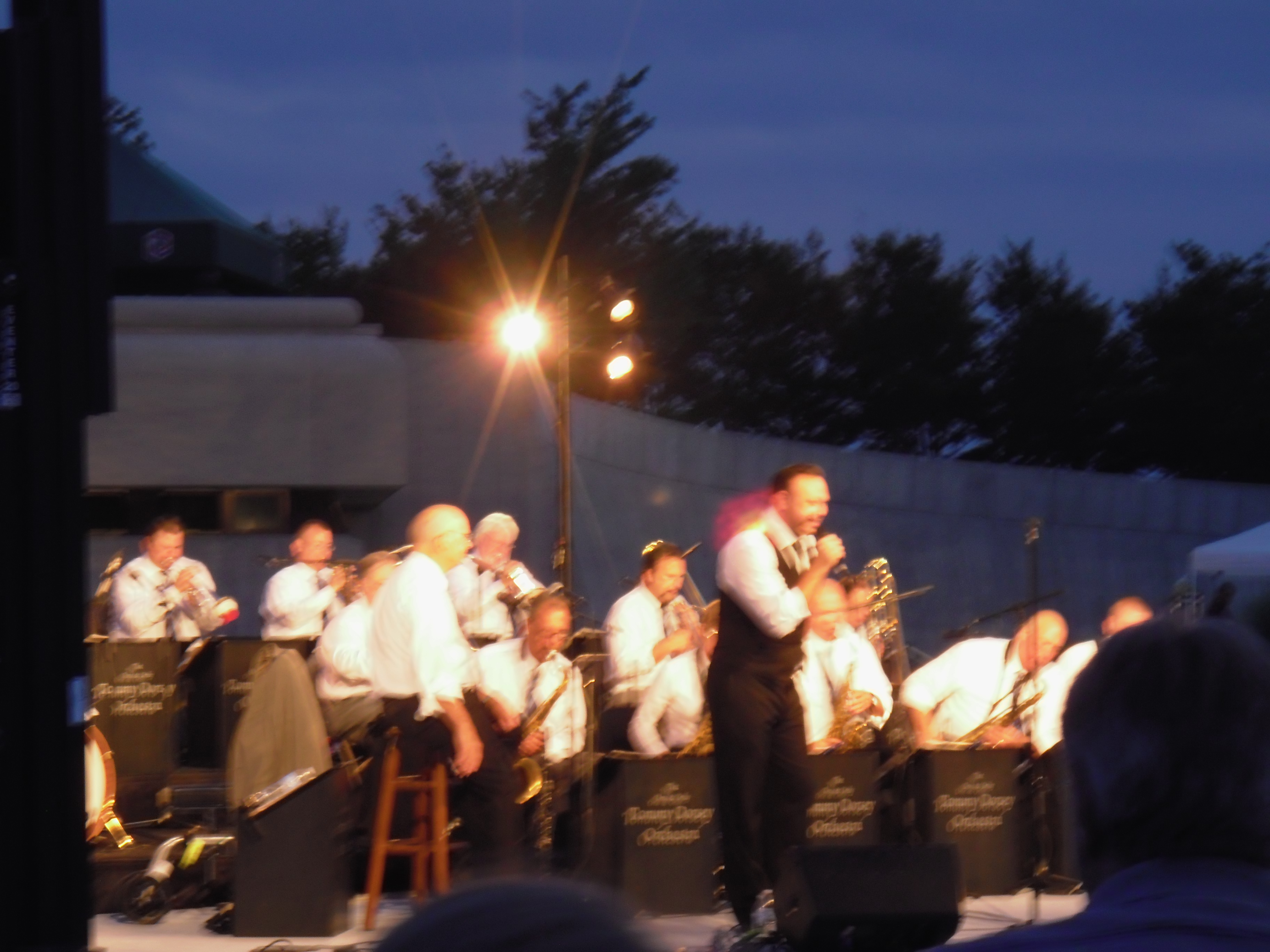 I went back to the D-Day Memorial one final time last night for the concert given by the Tommy Dorsey Orchestra. A group of talented musicians led by Terry Myers and featuring outstanding vocalist Bryan Anthony faithfully recreated the music of the man known as the “Sentimental Gentleman of Swing.”
