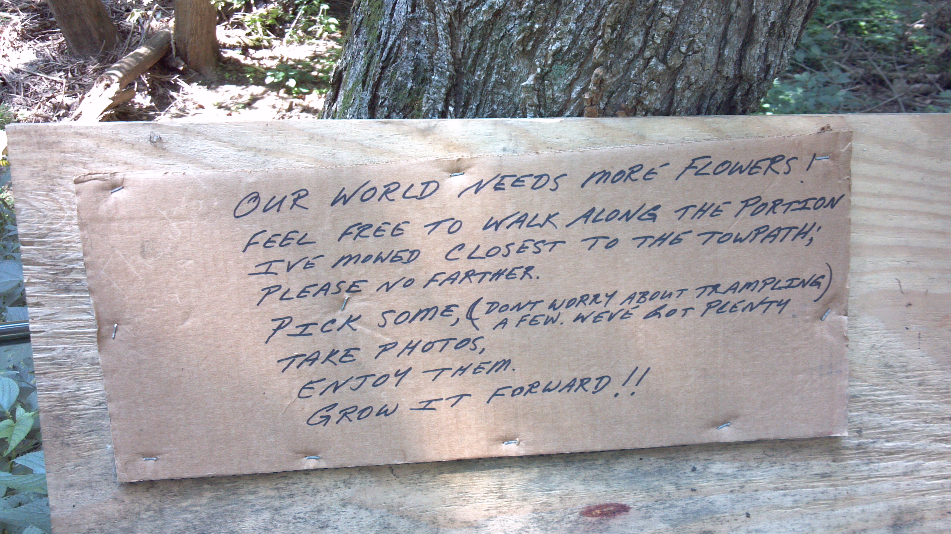 Perhaps the biggest reward was the sign placed along the towpath by the farmer: