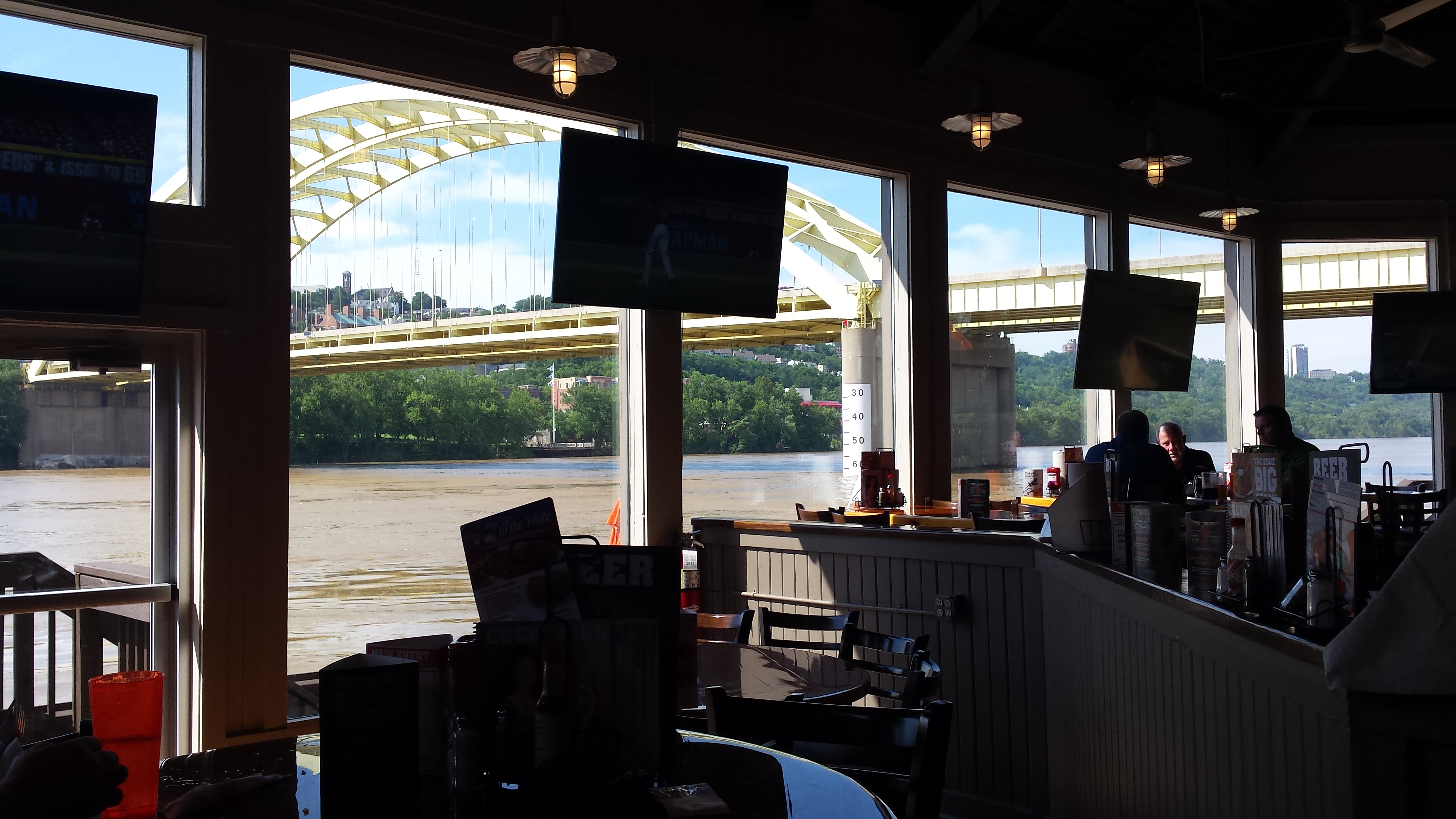 Fittingly, the winning run was walked home in the top of the 11th. We enjoyed the final four frames from the comfort and air-conditioning of the Newport, Kentucky Hooters. The view there is fantastic.