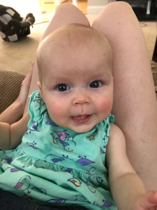 Our Skype time on Monday brought us another reward, however, besides little gummy smiles and wide blue eyes. As much as Riley has grown in these five months, so too, has Becky. She was holding Riley on her lap in front of the camera, and we got to watch our daughter just be with her daughter. Becky seems relaxed and confident as a mom now and that’s not a given. After all, becoming a mom is a serious adjustment. I mean first you give birth, which may be in accordance with the laws of biology, but it’s a process that certainly seems to defy several laws of physics. Then, they put this little naked bundle in your arms, one that comes with absolutely no instruction manual, and say, “Congratulations! You’ve just committed the rest of your life to this brand new miniature person!”