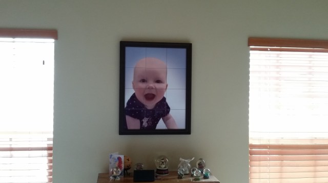 If you know my wife, Martha, then you know that she has taken up a new hobby, namely anything to do with our granddaughter, Riley. As a result, I managed to score the perfect gift, namely a framed, poster-sized photo on tiles, of the bald little joy-ball herself. I hung it in the bedroom and just let Martha find it.