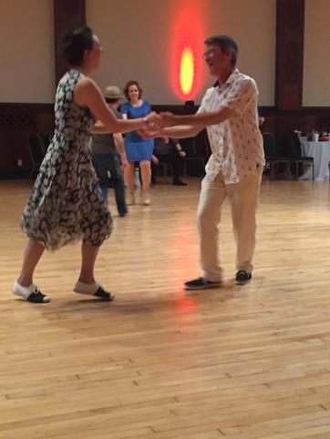 poetic license, I will tell you that dancers share a bond that is as strong as genetics; stronger in many cases. The interesting thing is that the dancing is the physical form which the bond takes, another name for which is joy. There is the joy of the movement, of the leading and following; there is the joy of learning that movement and creating new movement; there are the joyful sounds of the music and the laughter; there is the joy of holding one another in frame and hugging hello and embracing good-bye. There’s the joy of looking across the ballroom and seeing the same people at 10 o’clock at night who were also there at 10 o’clock in the morning and thinking, They’re hardcore just like we are!