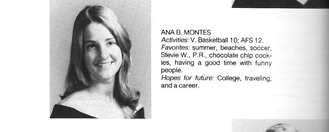 And then, there was Ana Montes, who graduated with me in the Class of 1975.