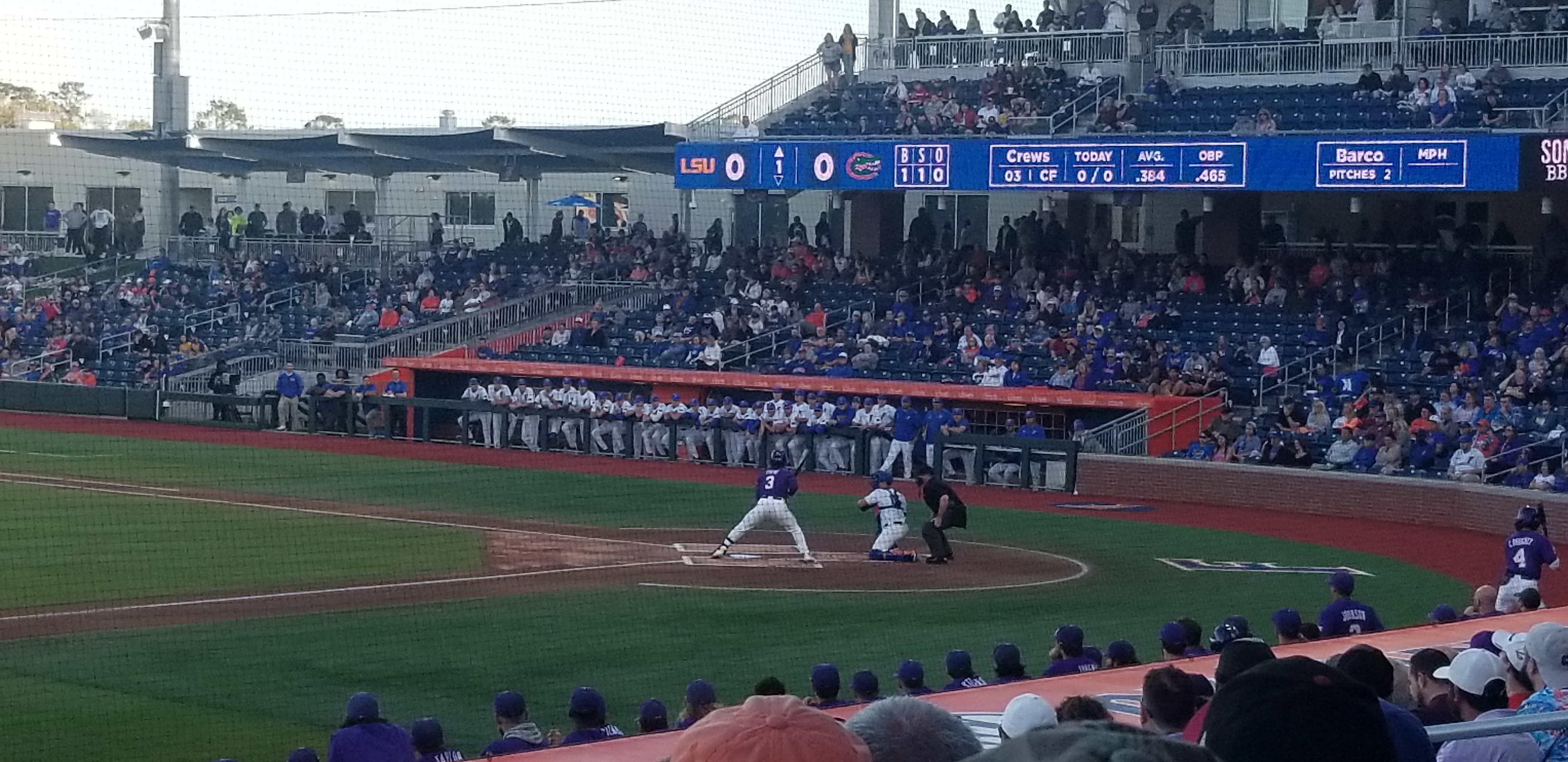 The Florida Gators hosted the LSU Tigers last year at Condron Ballpark. They will be two of the top teams at the SEC Tournament this year (as in most years). That happens to be LSU’s Dylan Crews at the plate. Crews is predicted by many to be the first overall pick in this year’s major league draft.