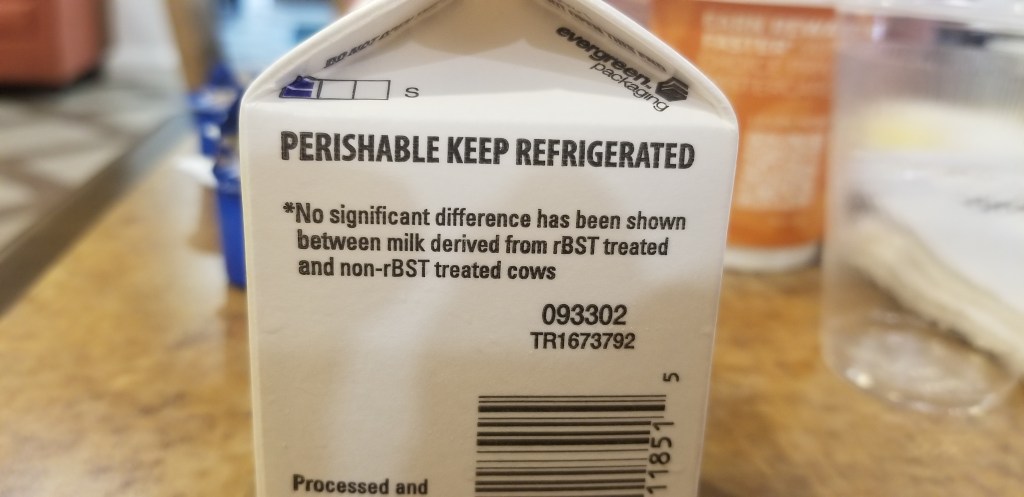 On the front of its milk carton, Glenview Farms wants you to know that their reduced fat milk comes “from cows not treated with the hormone rBST.” But on the back, Glenview Farms concedes that “no significant difference has been shown between milk derived from rBST treated and non-rBST treated cows.” . . . The hand of pomposity is quicker than the eye of common sense.